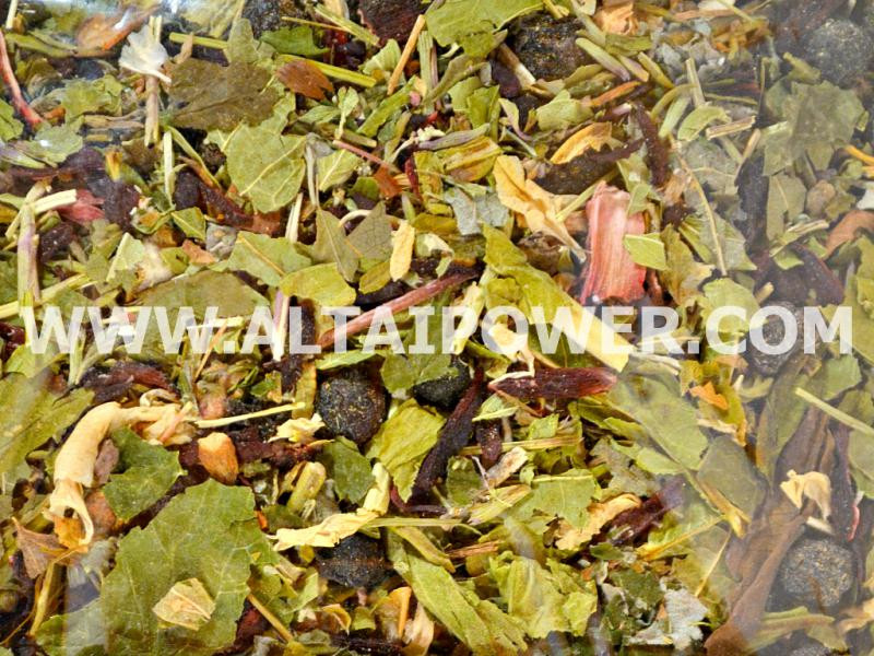 листья кипрея, трава курильского чая, листья лабазника, трава чабреца, зизифоры, листья смородины, малины, цветы гибискуса, календулы, ромашки.